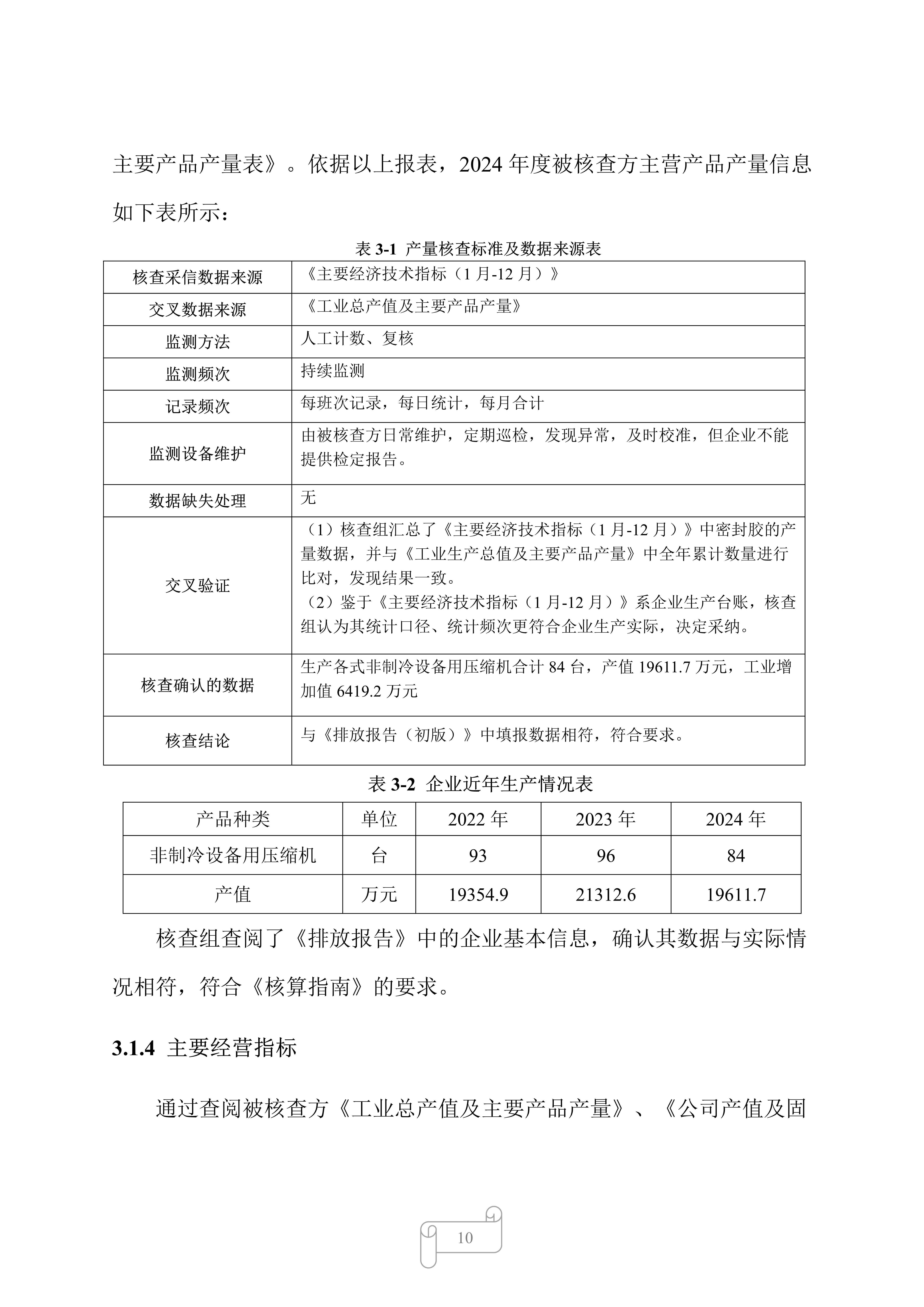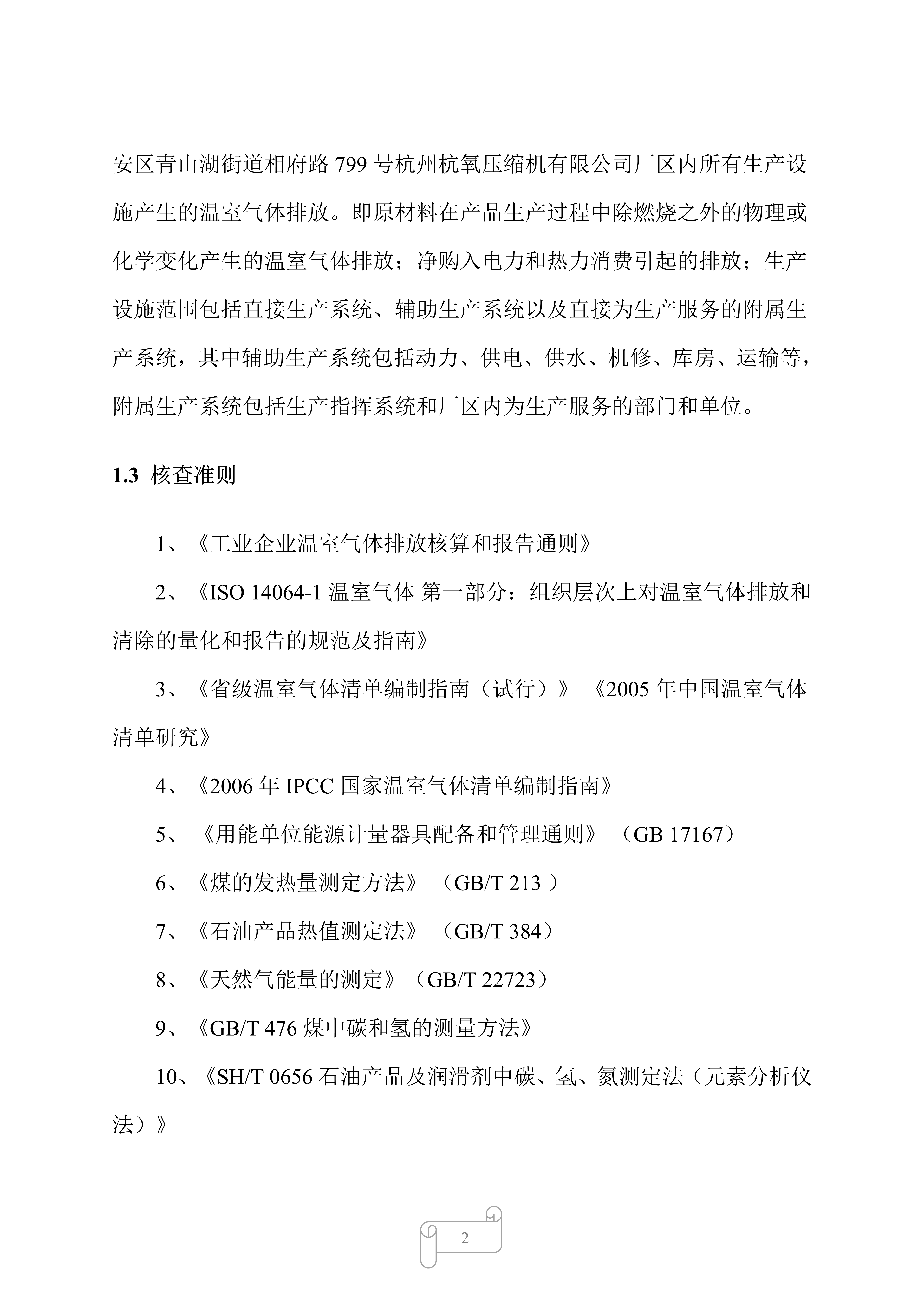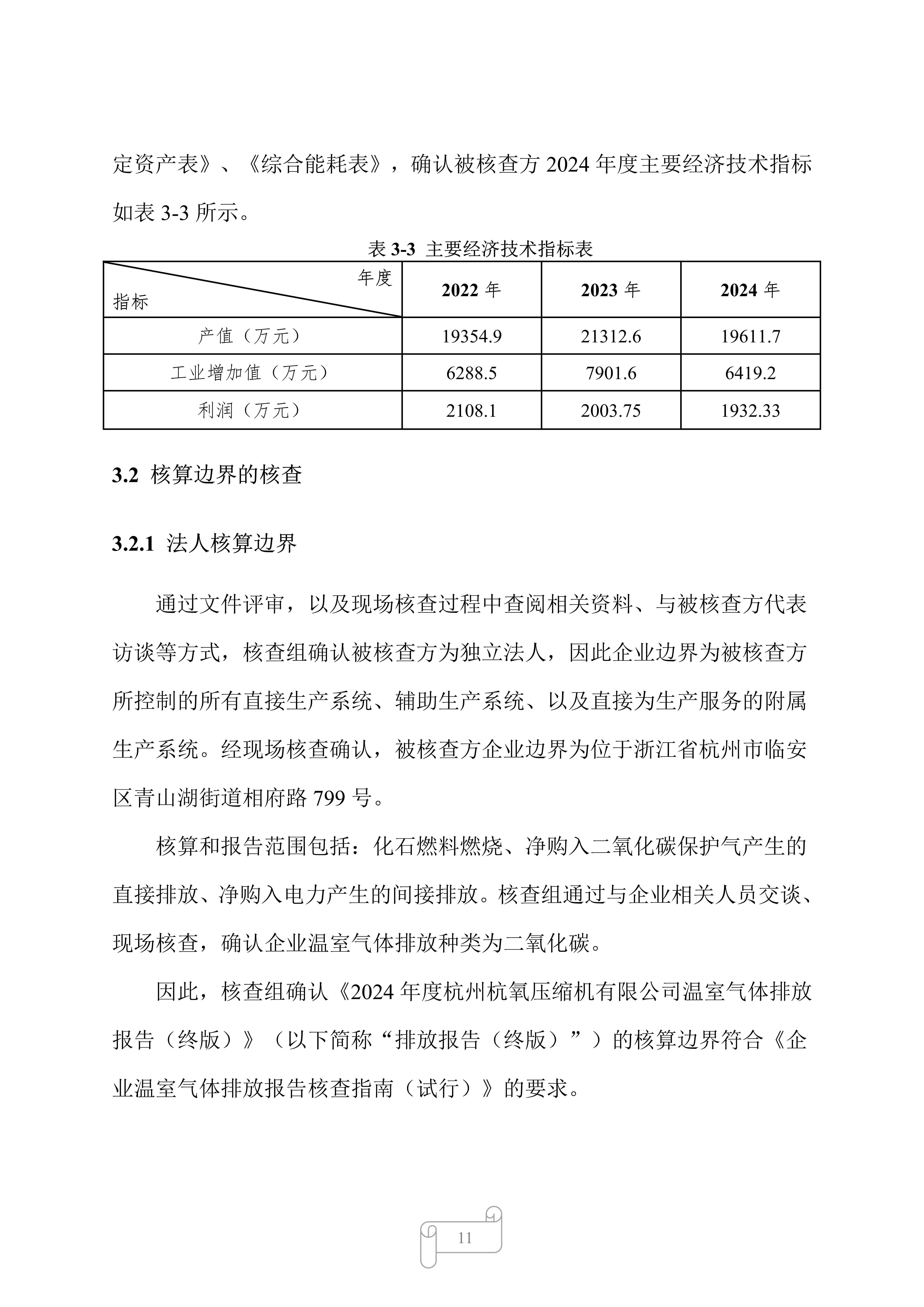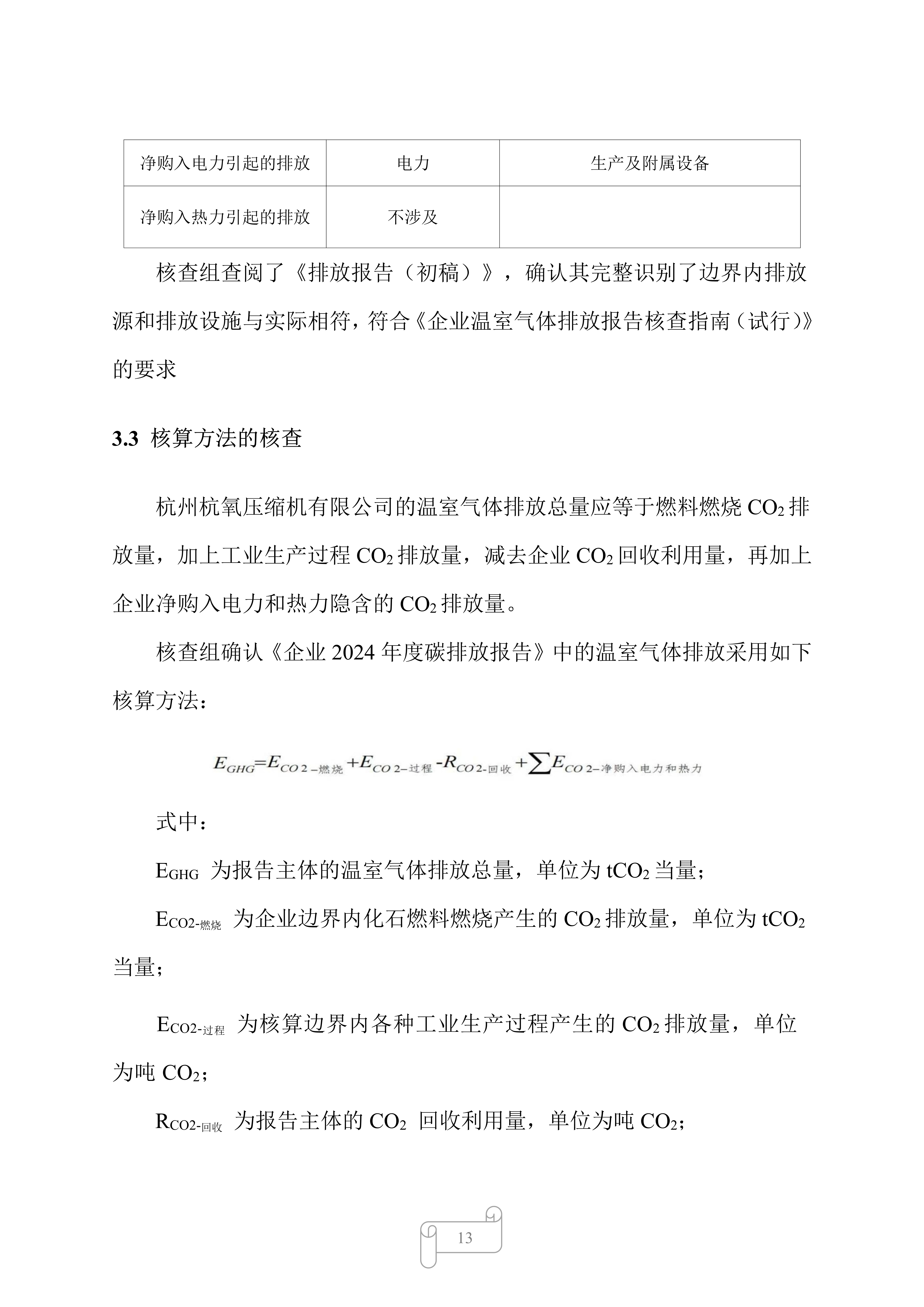 杭州杭氧壓縮機(jī)有限公司2024年度溫室氣體排放核查報(bào)告