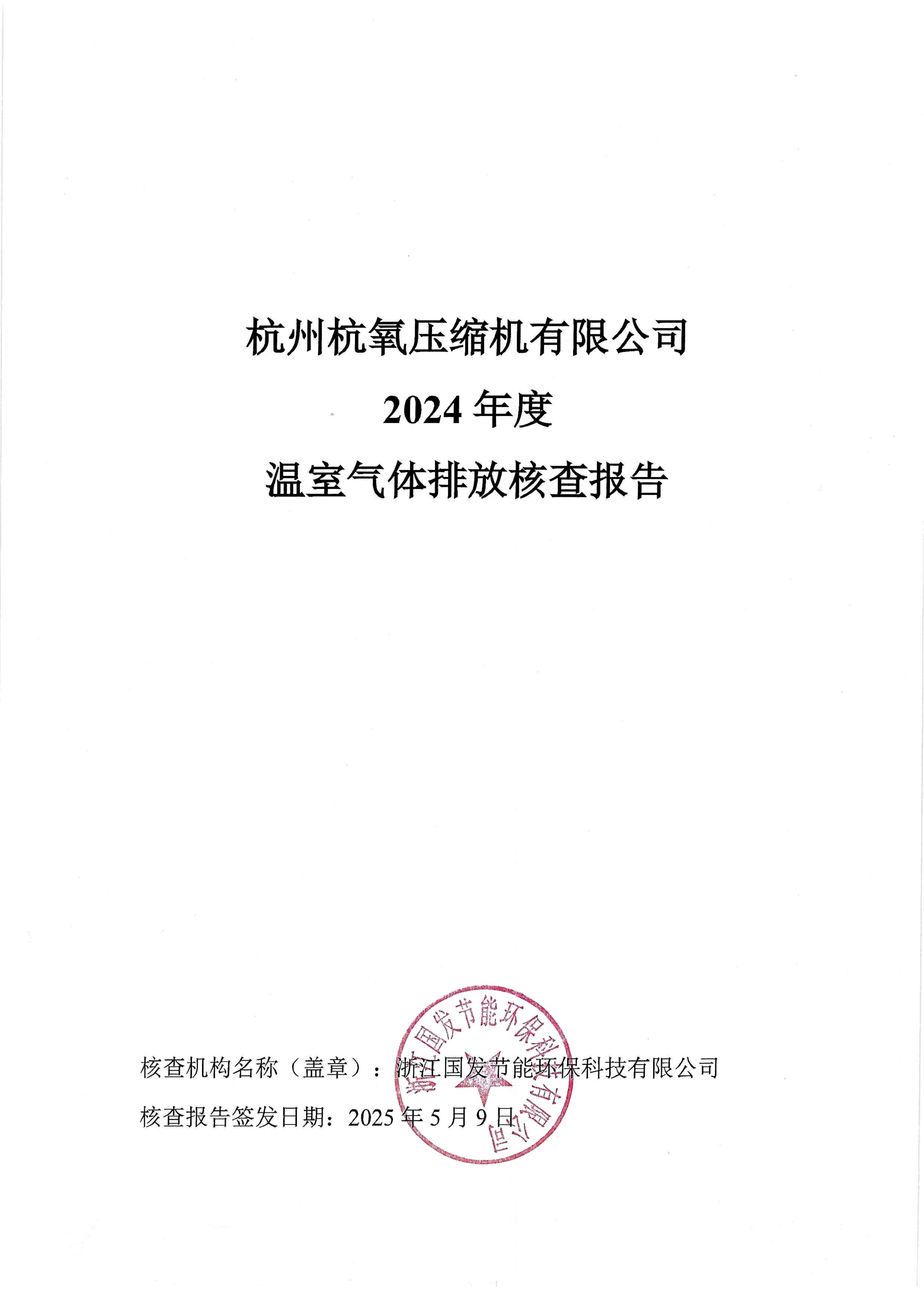 杭州杭氧壓縮機(jī)有限公司2024年度溫室氣體排放核查報(bào)告-公司新聞-杭州杭氧壓縮機(jī)有限公司