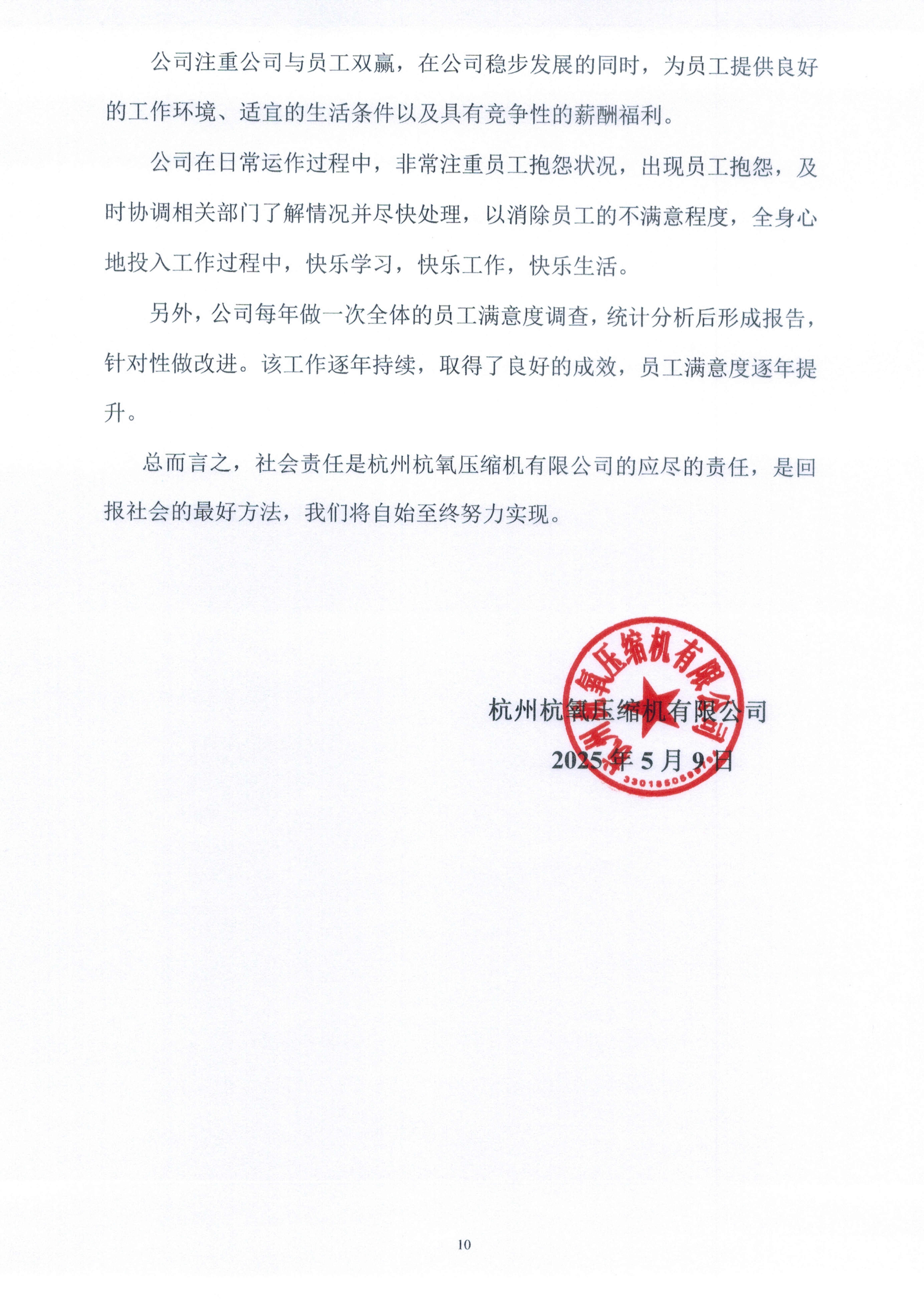 杭州杭氧壓縮機(jī)有限公司2024年社會(huì)責(zé)任報(bào)告-公司新聞-杭州杭氧壓縮機(jī)有限公司